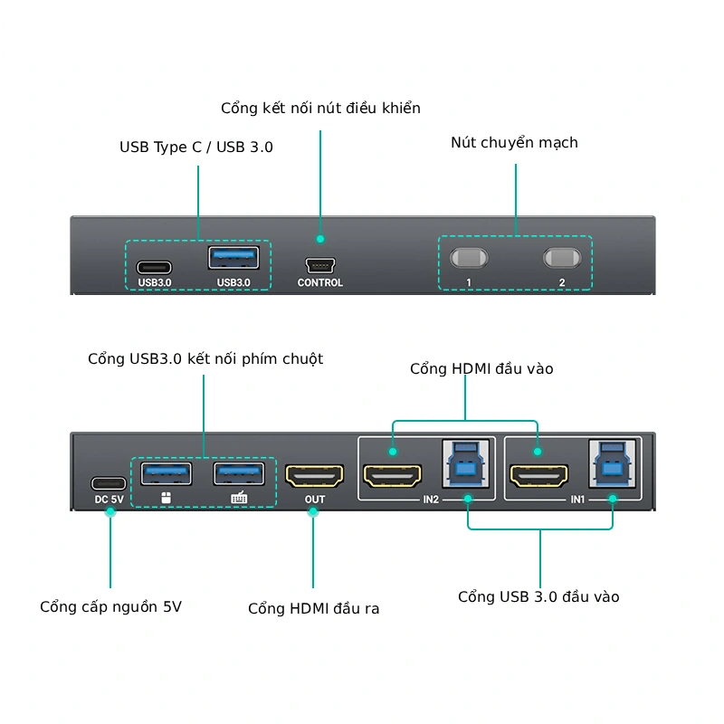 - Cấp nguồn cho KVM qua cổng USB Type-C