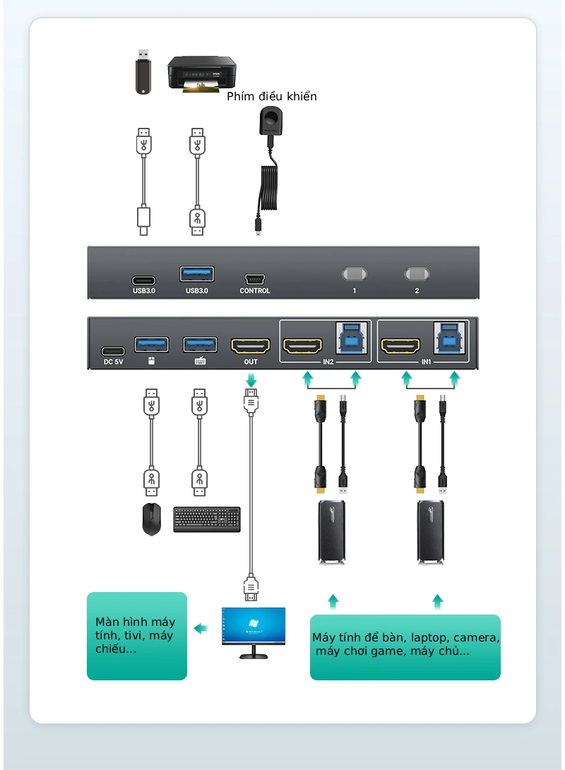 - Cho phép 2 máy tính dùng chung 1 màn hình HDMI