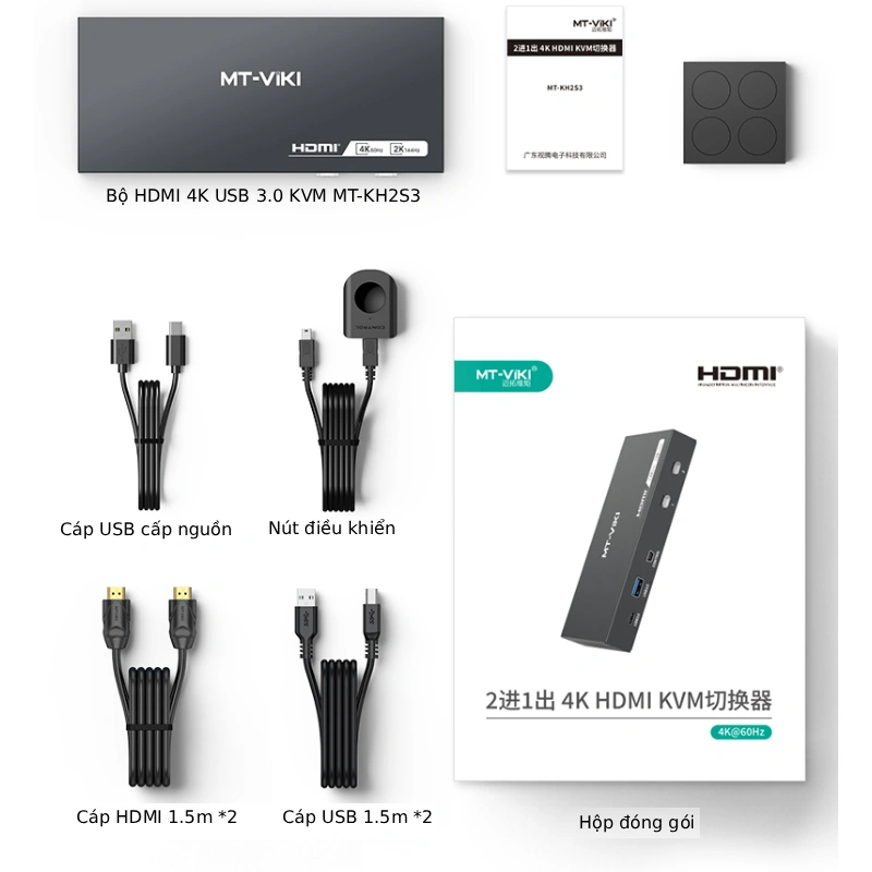 Bộ chia HDMI 4K USB 3.0 KVM Switch 2×1 MT-KH2S3 MT-VIKI – Dùng chung màn hình cho 2 máy tính