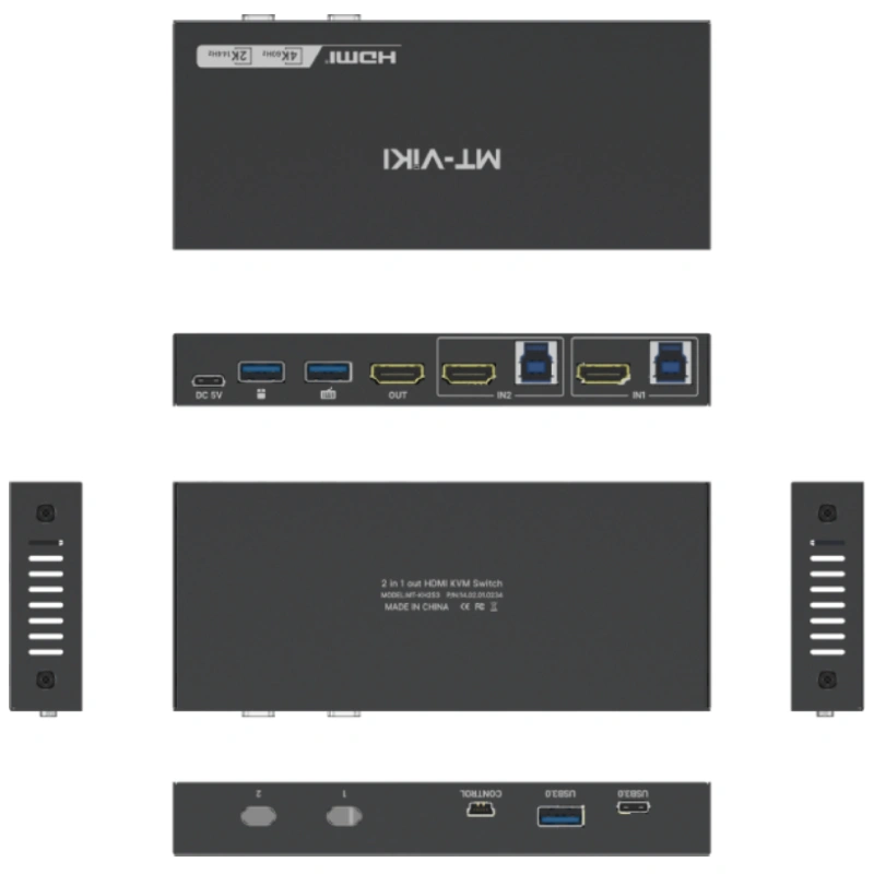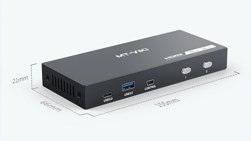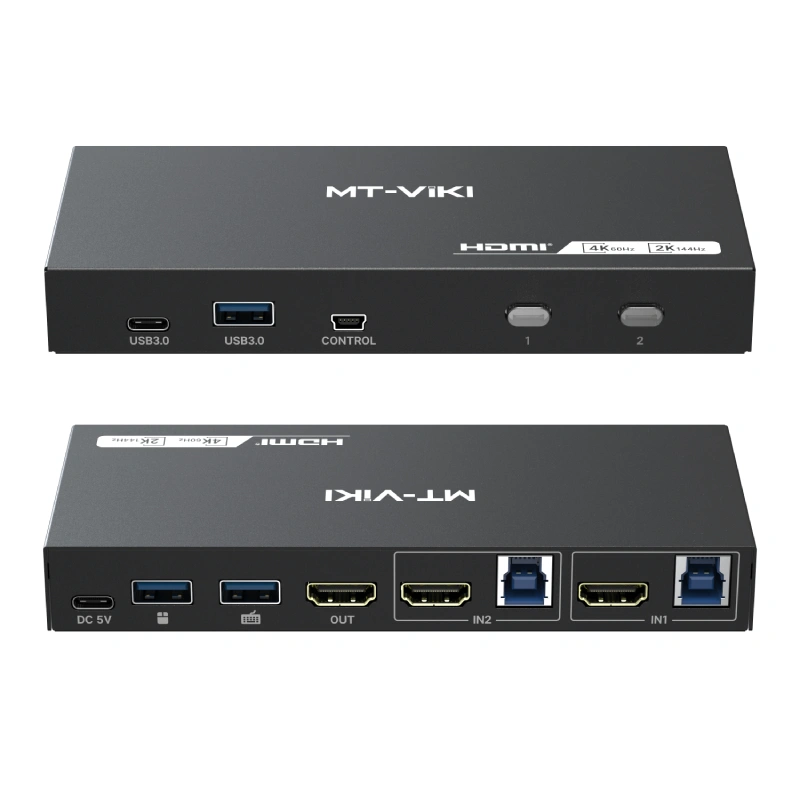 HDMI 4K USB 3.0 KVM Switch 2×1 MT-KH2S3 của MT-VIKI là thiết bị chuyển mạch KVM cho phép hai máy tính hoặc laptop dùng chung một màn hình HDMI, một bộ bàn phím, chuột và các thiết bị USB 3.0 chỉ với một nút bấm.