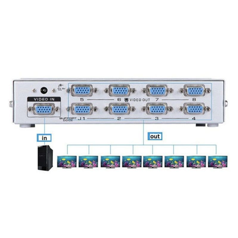 Chia tín hiệu VGA từ 1 CPU ra 8 màn hình VGA, Máy chiếu cùng hiện thỉ chung 1 nội dung. Băng thông 150MHz, Hỗ trợ độ phân giải 1920x1440P.