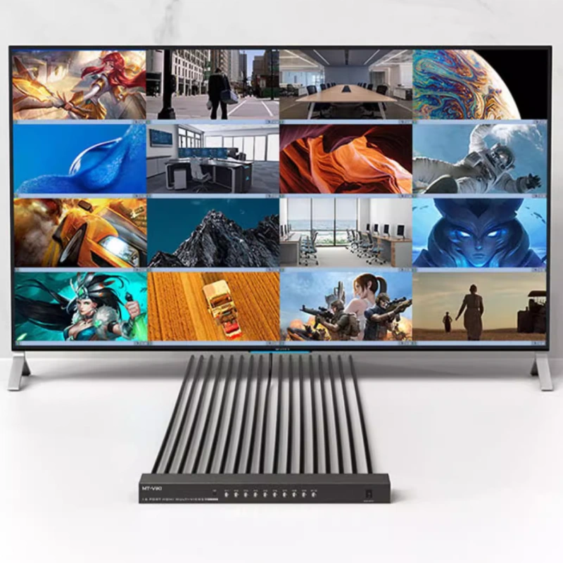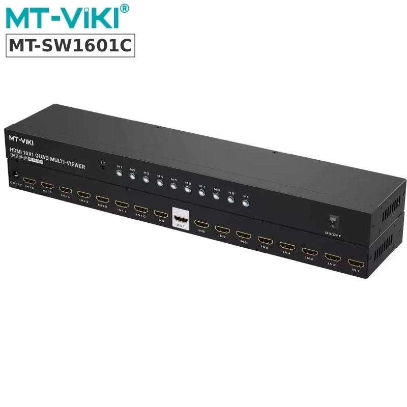 MT-VIKI MT-SW1601 là bộ gộp HDMI Multiviewer 16 vào 1 ra cao cấp, cho phép hiển thị đồng thời 16 kênh video (4×4) trên cùng một màn hình.