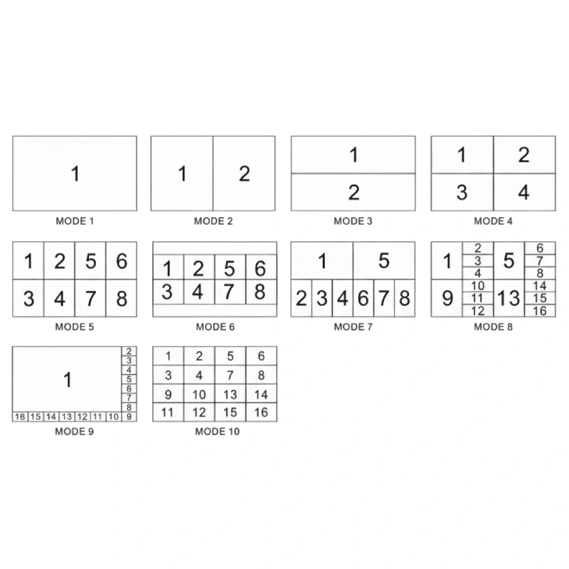 ✔ Hiển thị đồng thời 16 nguồn HDMI trên một màn hình (4×4)