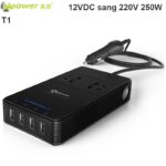 Bộ tẩu sạc chuyển nguồn 12V sang 220V 2 ổ điện, 4 cổng USB DC5V-2.4A QC3.0 Xpower Nano O2 Series T1