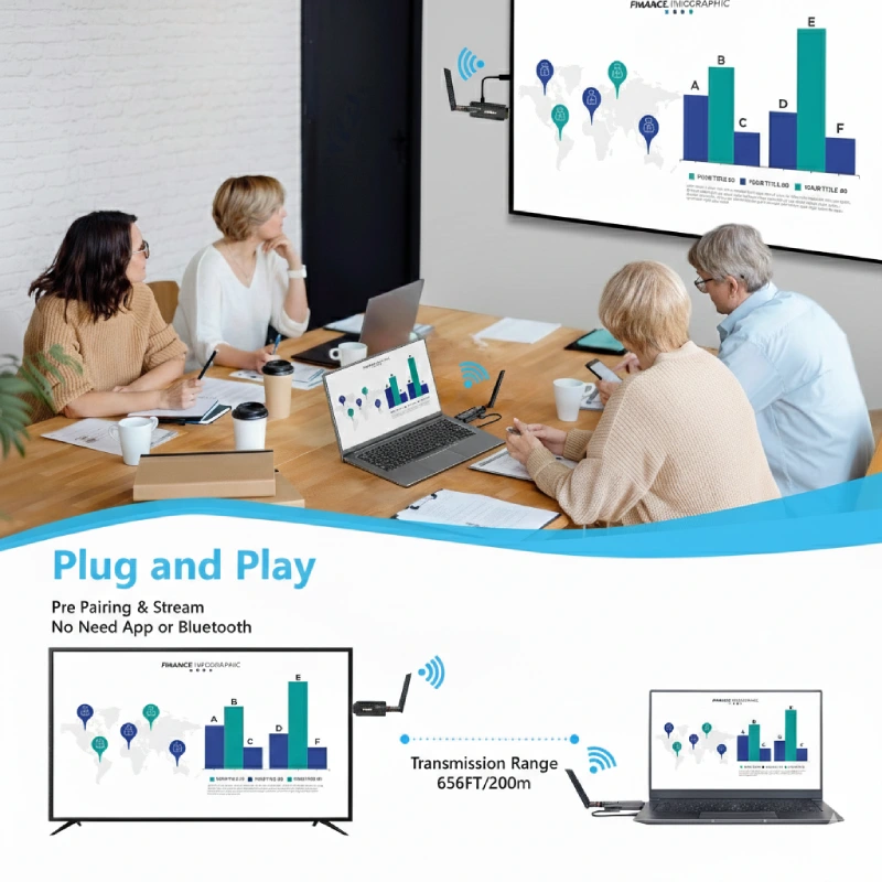 Là thiết bị truyền tín hiệu HDMI không dây với khoảng cách xa lên đến 200m và độ phân giản 1080P60Hz, cho phép trình chiếu hình ảnh HD 4K từ máy tính, camera đến TV hoặc máy chiếu.