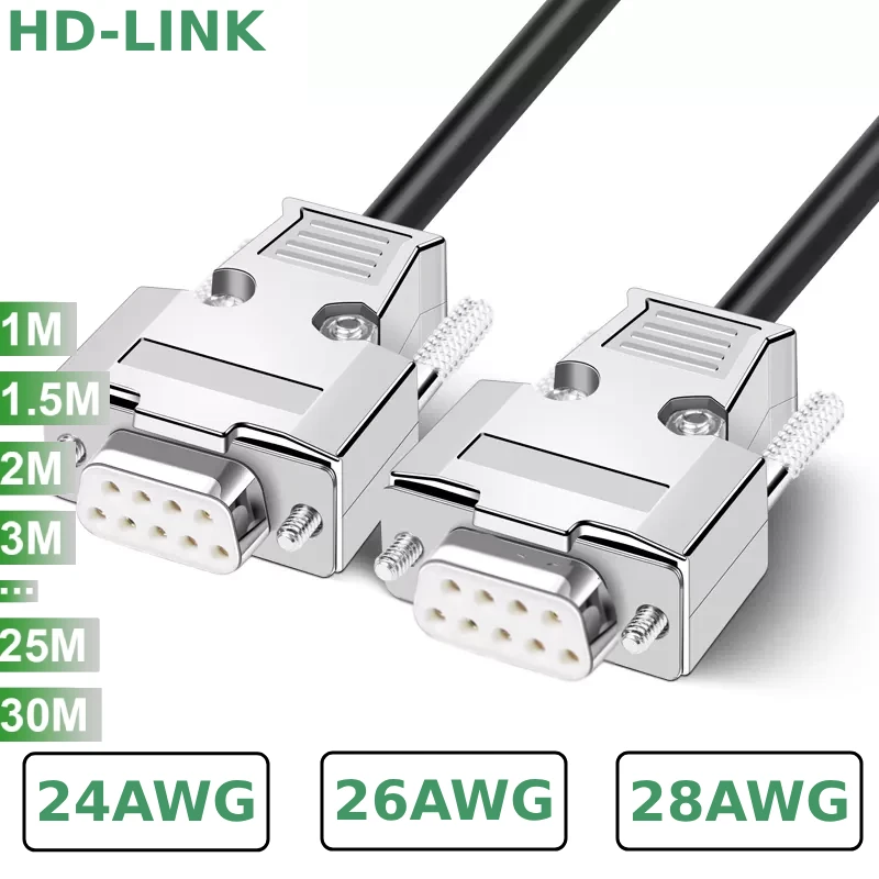 Cáp COM DB9 RS232 2 đầu cái, nối thằng, nối chéo, chất lượng cao với đầu kim loại, chân đồng dài từ 1m-30m