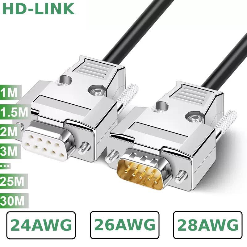 Cáp điều khiển COM DB9 RS232 2 đầu đực cái, nối thằng, nối chéo, cao cấp với đầu kim loại, chân đồng đúc dài từ 1m-30m