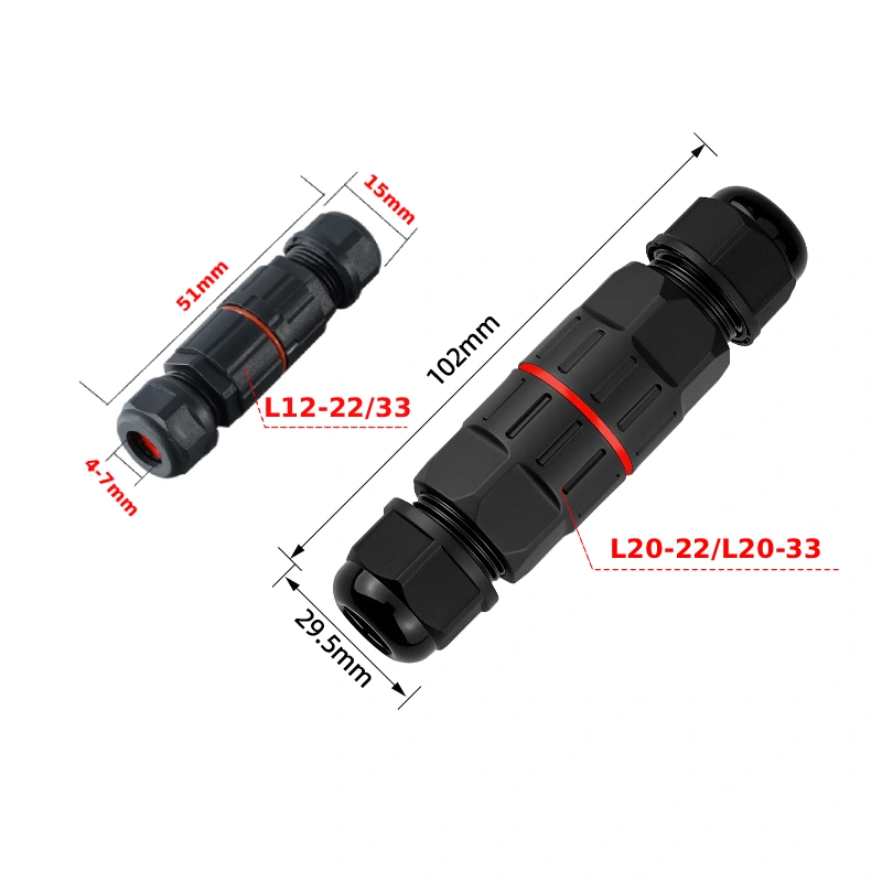 Đầu nối dây điện ngoài trời chống nước IP68 L12-22/L12-33 và L20-22/L20-33 kết nối nhanh