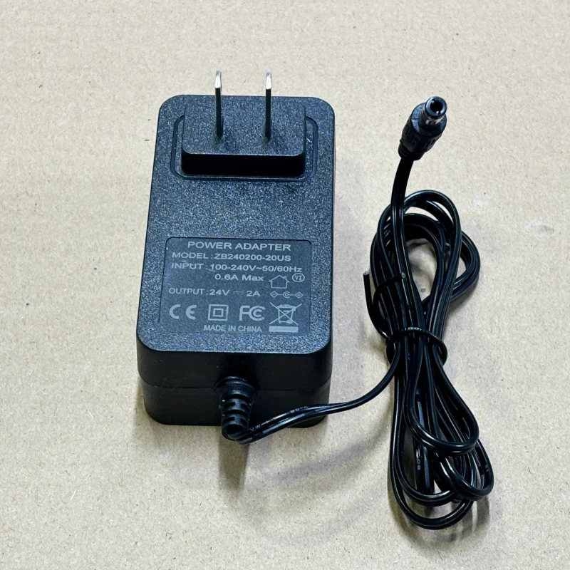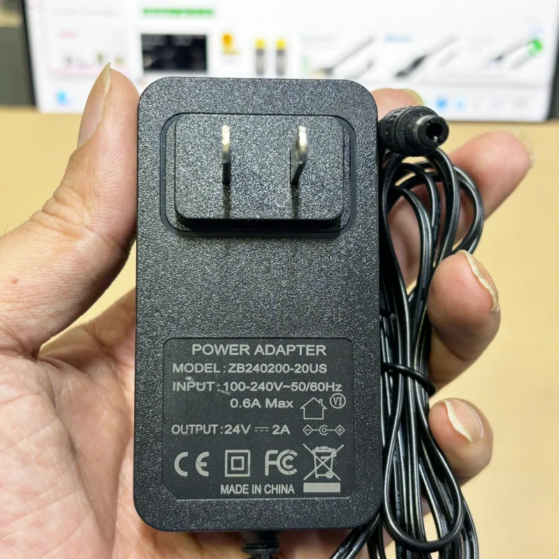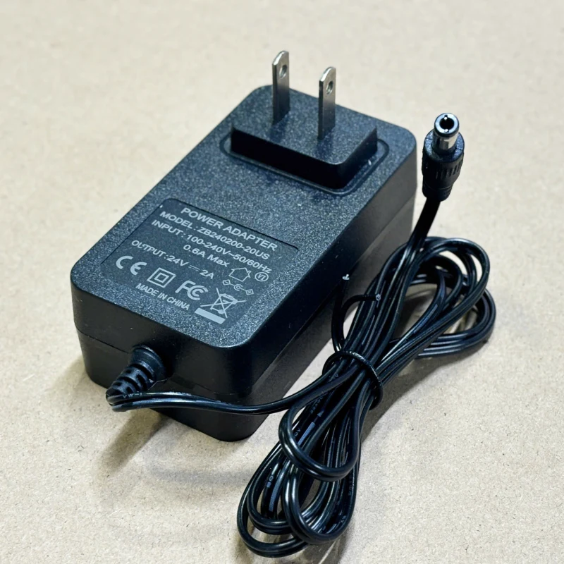 Nguồn DC Adapter 24V-2A ZB240200-20US, chân cắm DC 5.5×2.5/2.1mm, dạng cắm tường chân chuẩn US