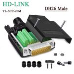 Đầu bấm cổng DB26 dương male bắt vít kèm vỏ ốp nhựa chân đồng HD-LINK YL-SCC-26M